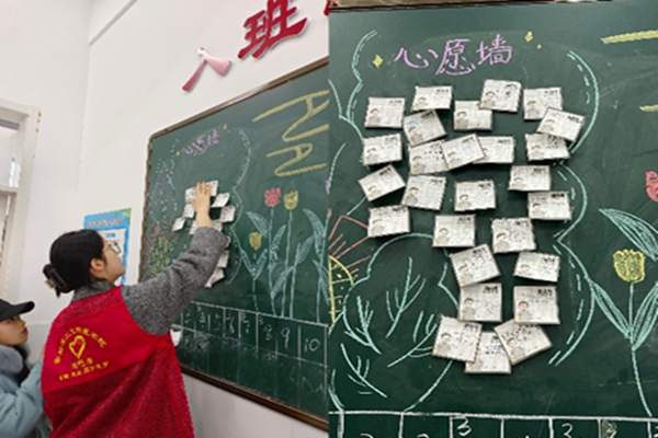 志愿者们张贴小朋友们的心愿贴(供图:尹煜捷)