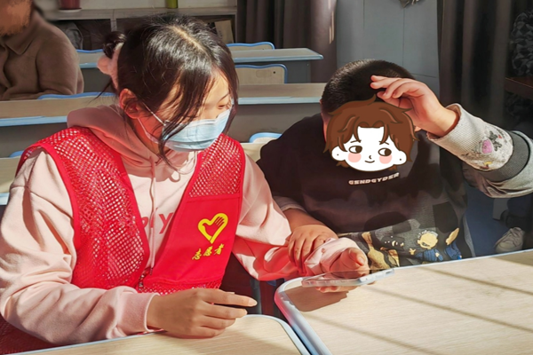 志愿者通过打字与听障小朋友沟通(供图:李佳珏)