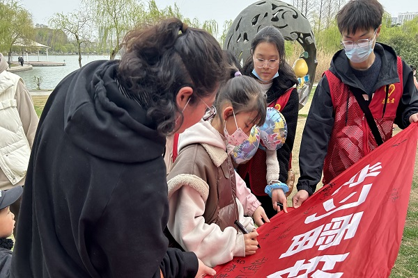 3月19日,志愿者们分成两个小队前往龙湖公园,组织了一场以“环境保护宣传”为主题的活动。志愿者们先是帮助园区工作人员打扫卫生,清理垃圾,随后又向龙湖公园里的广大游客们宣扬雷锋精神、助他们树立环保意识,呼吁大家一起学雷锋、做先锋,保护环境,建设美丽家园。志愿者们不怕脏、不怕苦、不怕累,积极投身社会实践活动,用实际行动诠释雷锋精神。在他们身上,闪烁着少年人独有的光芒。