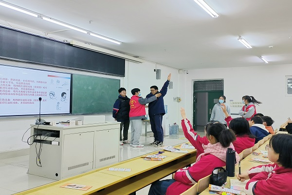 活动中,志愿者们向高中生们发放医学知识宣传手册,详细介绍了日常医学知识及急救方法,并针对近期甲流病毒提出了一些预防与应对措施。此外,志愿者们现场教学了压迫止血方法,通过实际模拟、亲身参与的方式向同学们演示了不同的止血技巧。最后志愿者们现场提问一些医学小知识,并发放小礼品,在场的高中生热情高涨,积极参与,现场气氛十分活跃。淮南二中的负责老师说:“感谢你们来我校宣传,同学们收获了很多医学知识,希望有机会再次光临本校!”