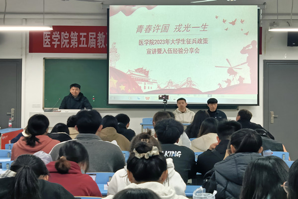 为扎实做好大学生征兵宣传工作,扩大征兵宣传的影响力和辐射面,4月4日晚,医学院于崇仁楼B119教室举办征兵入伍经验分享会。活动以线下线上相结合方式同时进行,优秀退役学生代表李兵、何奎、陈陈作经验分享,毕业班辅导员及各年级学生代表参会。