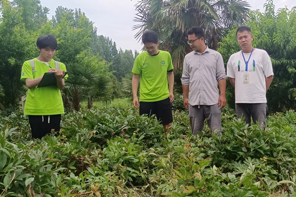 7月9日上午,实践团队在安徽济人药业业务经理张雷的带领下,前往亳州市谯城区的中药种植基地参观。张雷向实践队员介绍到,目前企业中药的种植总面积高达1000余亩,包含近95种中药材及16种农副产品,基地根据中草药种植的历史经验,按照不同草药的习性、生长周期、药用部位进行科学的轮作、间作,这是亳州中草药兴盛发达的秘诀。深入田亩间,实践团成员首先映入眼帘的是一片白芍种植基地,“白芍以根茎入药,种植周期为4至5年,有明显的镇痛、镇静、解痉作用,白芍旁为板蓝根,以根茎入药,种植周期为一年,越冬后在第二年清明前后进行采种,旁边依次为马鞭草、亳菊、丹参、白术等等”,张雷详细为成员介绍种植的中草药。在种植基地走访过程中,实践团队成员们真切感受到亳州“中华药都”的美誉。