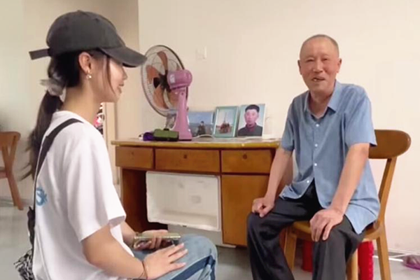 7月13日上午,实践队踏上了探寻红色记忆之路。为了表达对英勇老兵和无私党员的敬意,淮南市洞山村书记胡艳兵和实践队队员们前往采访慰问老兵、老党员。实践队队长陆佳钰采访了老党员、老兵尹学平,尹学平用亲切的方言讲述他的随军、入党经历,当年那段艰难历史中一件件红色故事、一段段红色经历,让队员们深刻体会到了现在美好生活的来之不易,也明白了成为一名党员该有的担当与责任。听着关心和关怀,老党员尹学平激动地说:“真的很感谢党和政府的关怀。我们要为党和人民做点贡献,不说多大的贡献,哪怕一点点小贡献。大学生入党首先一点思想要正,做点好事不难,难的是一辈子做好事。”