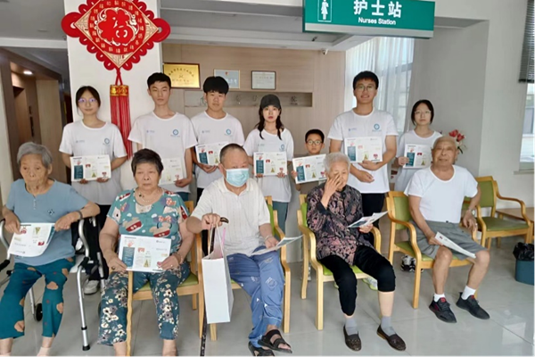 7月14日,实践队迈上了安馨护理院之旅,收到了护理人员和老人们的一致好评。实践队给所有老人进行了血压测量、辅食,针对保健、饮食给予了合理化的建议,耐心地为老人讲解日常保健知识,亲切交谈、分享时事,询问他们的生活作息和饮食情况,嘱咐老人们一定要注意早睡早起,合理用膳,增强自我保护意识,并且帮助他们如何使用智能机等。“驿路梨花处处开,医护精神代代传”,因为老伴去世而伤了神智的医者老人,古稀之年仍能清晰说出血压正常范围值,她紧握志愿者的双手,眼含热泪,队员们不约而同地表示势必将医护精神传递。实践队还给安馨护理院送去安徽理工大学医学院健康知识宣传资料50余份,将健康和温暖实实在在地送到了老人们身边。
