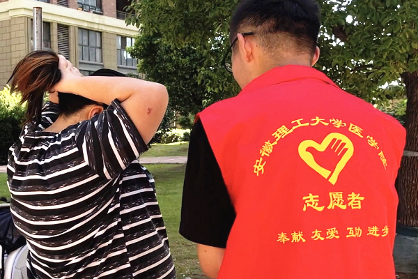 为深入贯彻落实党的二十大精神,同时结合“优质医疗资源下沉,人人享有健康”的主题,安徽理工大学医学院“‘医’路同行,重任在肩”社会实践团的志愿者们来到安理社区进行志愿服务。