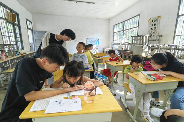 8月14日成员们利用村委会现有活动室、农家书屋和村小学等条件,积极开展以“假期小课堂”为主体的“展活力献爱心,关爱留守儿童成长”志愿服务活动。通过“大学带小学,大手拉小手”,丰富了村小学生的假期生活,解决了学生的假期学业没人辅导、沉迷于手机不愿学习等问题。