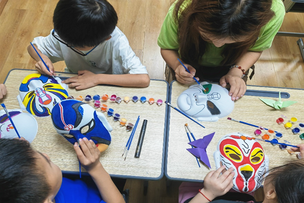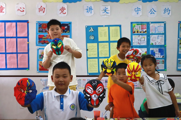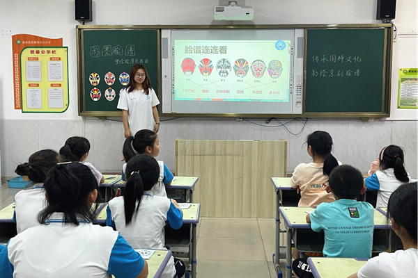 志愿者在支教课堂上开展京剧脸谱知识宣讲课