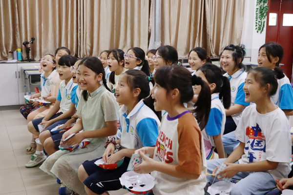 志愿者与同学们一起展示彩绘脸谱作品(供图:于善聪)