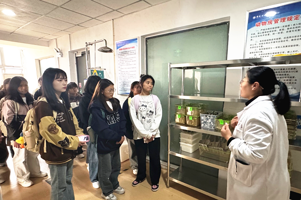老师带领新生同学们分别参观前沿中心各实验室及动物房,对实验室存放各类仪器设备进行功能介绍,并结合药学专业介绍医学院人才培养政策、科研实验支持举措。参观过程中,老师强调,实验室中安全是第一要位,同学们要增强安全意识,遵守实验室各项规定,提高自身科学文化修养。