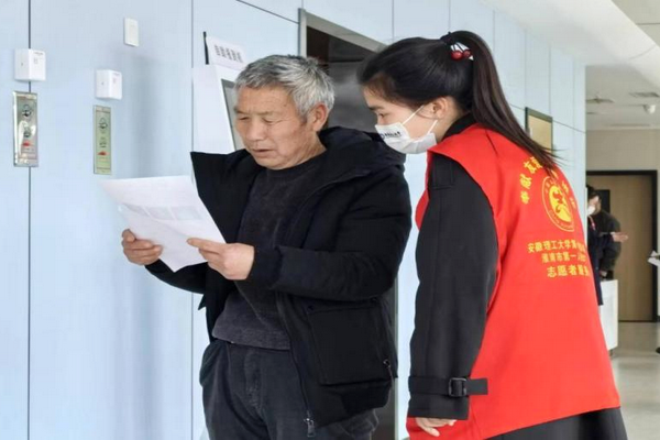 3月10日上午,青“锋”志愿服务队在安徽理工大学第一附属医院(南区)开展“智慧助老,科学普及医疗健康”志愿服务活动。志愿者们耐心地向老年患者讲解医院智能设备的使用方法,使其能够更好地享受信息化带来的福利。在普及健康知识的同时,志愿者们耐心解答患者所提出的各种问题。青“锋”志愿服务队的到来填补了互联网发展给老年患者带来的“信息鸿沟”。“谢谢你们的细微讲解和陪伴”、“你们真是好样的!”一句句感谢的话语背后,是志愿者们的默默坚守和勇敢担当。