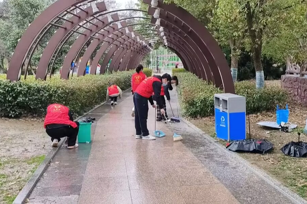 在协助游客进行游行后,同学们积极配合工作人员进行工园打扫工作,在公园进行无微不至的扫除任务,将草地上残留的塑料口袋、卫生纸等统统扫入垃圾桶,用手将细小垃圾进行分类处理,为游客提供了干净卫生的游乐环境。
