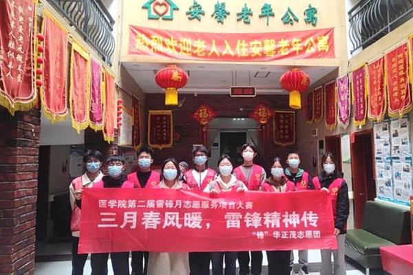 三月春风处处暖,雷锋精神代代传。为进一步弘扬雷锋精神,传承奉献美德,临床23-2班团支部的10位同学组成“锋”华正茂志愿团,积极开展爱心志愿服务活动。3月15日,志愿团走进安馨老年公寓,践行“尊老、敬老、助老”的社会公德,加深对“百善孝为先”的深刻理解。
