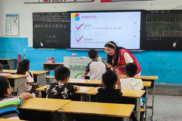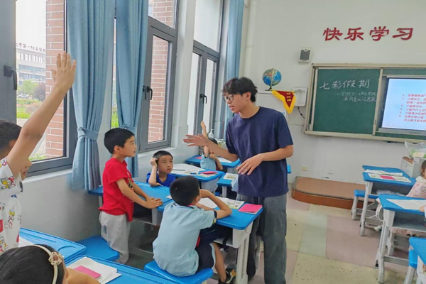 志愿者与学生互动