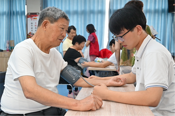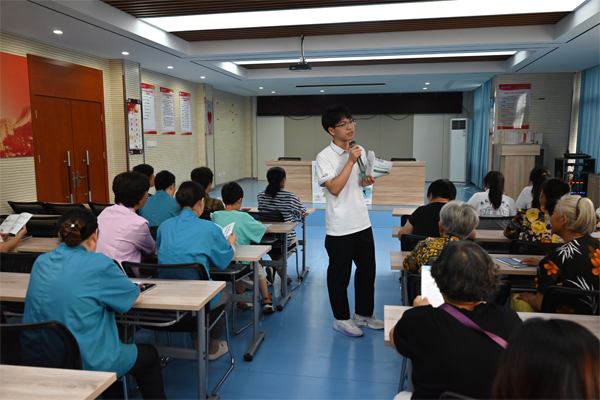 加强对健康科普知识的宣传与普及,团队成员在青山社区的开展卫生健康讲座、入户健康调研等活动。团队成员主要介绍了结核病、脑卒中、高血压等常见疾病的相关知识,重点强调了合理膳食、低盐低脂饮食、戒烟限酒、科学锻炼、心理健康等健康的生活方式在预防各类疾病的重要性,将健康生活的理念带给每位居民。宣讲结束后,成员认真地为每一位居民测量血压、血糖,进行身体检查,并详细记录检查结果,同时耐心地解答村民们的日常健康管理问题,提供个性化的健康建议,并为村民分发健康宣传册和送上爱心医药包。此外队员还走进农户家,展开了脑卒中的认知问卷调查,普及“中风120”口诀,帮助居民掌握快速识别脑卒中的方法。