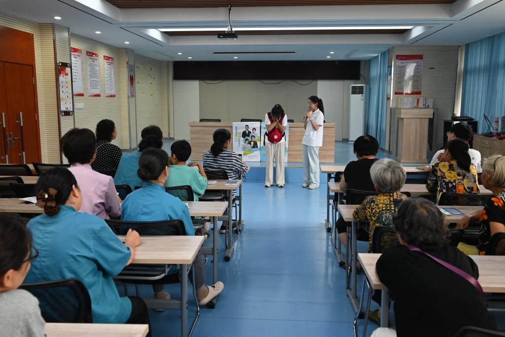志愿者在金寨县梅山镇青山社区向居民宣传海姆立克急救法
