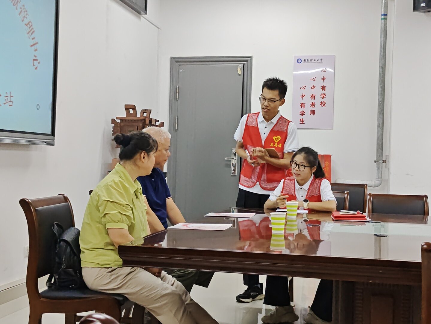 7月28日,服务队开展“送清凉”公益行动,为校园门卫送关怀。夏日炎炎,门卫师傅们坚守岗位,守护校园安全。志愿者们准备了毛巾、水杯、防暑药品等物资,走访四大校门,亲手送清凉,缓解高温不适,传递温情。同时,志愿者们还传授防暑知识,增强门卫自我保护能力。