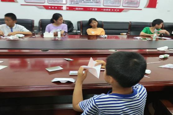 志愿者教孩子们折纸