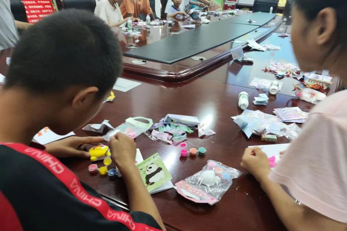 7月6日志愿者们满腔热心的开始了本次活动,他们带领孩子们重温革命精神,通过讲故事、放视频、提问题等方式,带领小朋友们重温那段红色记忆,通过红色歌曲教学激发他们的爱国情感。在“趣味游戏,传承文化”环节中孩子们通过折纸和“石膏娃娃DIY”课程,锻炼了动手能力和创造力。