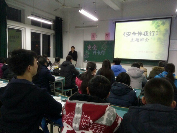 为了进一步规范2015级新生的日常行为,12月23日晚,医学院在医教201举行了安全知识报告会。辅导员柏丹丹、班主任及辅导员助理共同参与此次报告会。