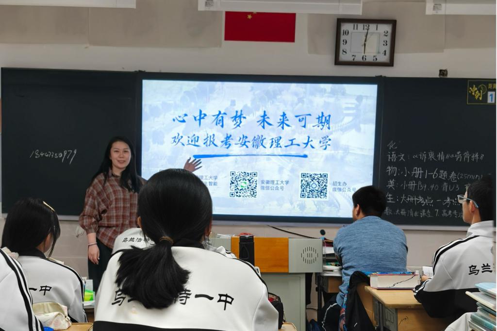 回访过程及感悟:回到久违的高中校园,看着校园里熟悉却又有些陌生的一切,我不禁感慨万分。当我怀抱鲜花再次见到我的高中班主任时,从前的回忆涌上心头,我向班主任分享了我的大学生活,他也对我表达了他的祝福。随后,我走进了高三同学的教室,以2024届高考学姐和安徽理工大学学子的身份向他们分享了我备战高考和填报志愿的经验。而后我向他们重点介绍了安徽理工大学悠久的办学历史、优越的地理位置和雄厚的师资力量,这极大的激发了他们对安徽理工大学的兴趣。最后,我祝愿他们高考加油,期待与他们在安徽理工大学相见。