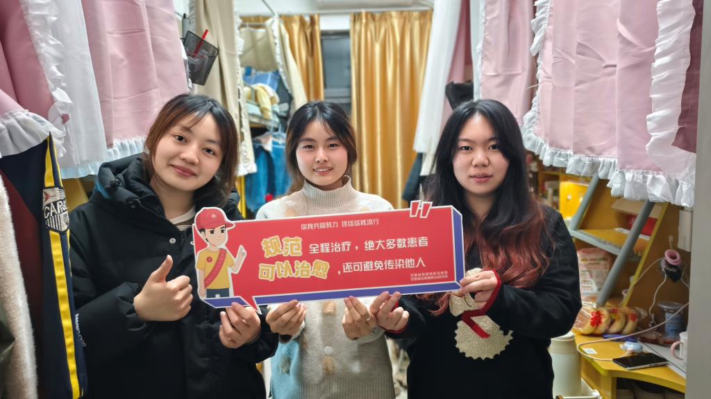 志愿者在宿舍开展进行防治结核病知识宣传活动