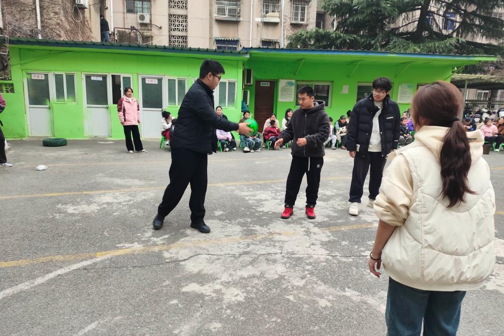 除了丰富多彩的室内活动,志愿者们还带着小朋友们一同走到户外,投入到充满趣味的游戏之中。在明媚和煦的春光里,孩子们在“老鹰捉小鸡” 的游戏中肆意奔跑,清脆悦耳的笑声回荡四周;在 “抢凳子” 游戏中,他们尽情享受着竞争带来的乐趣;在 “拍皮球” 活动中,小小的西瓜皮球在地面上欢快地跳跃、落下,孩子们的目光紧紧追随,眼神中满是好奇与欣喜。志愿者与小朋友们手牵手、心连心,共同沐浴在阳光之下,彼此之间的情谊也在这欢乐的氛围中愈发深厚。