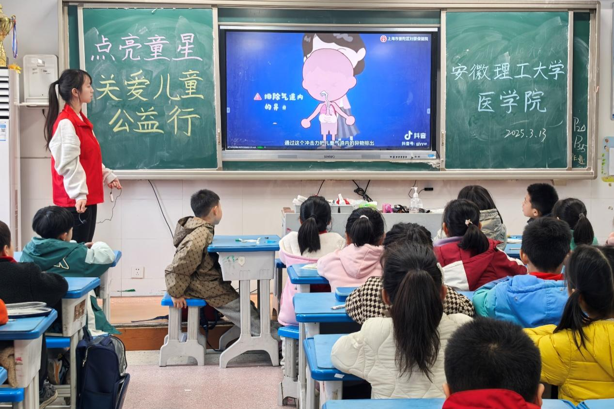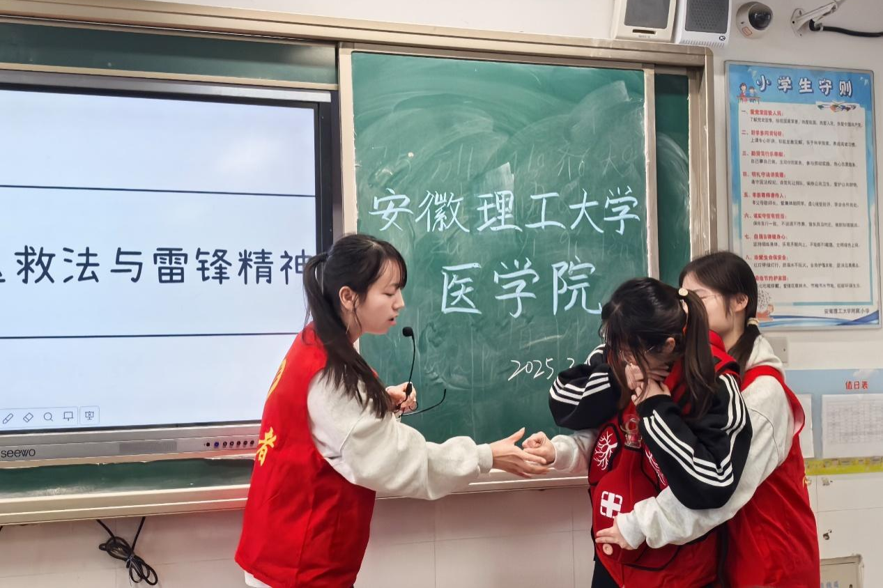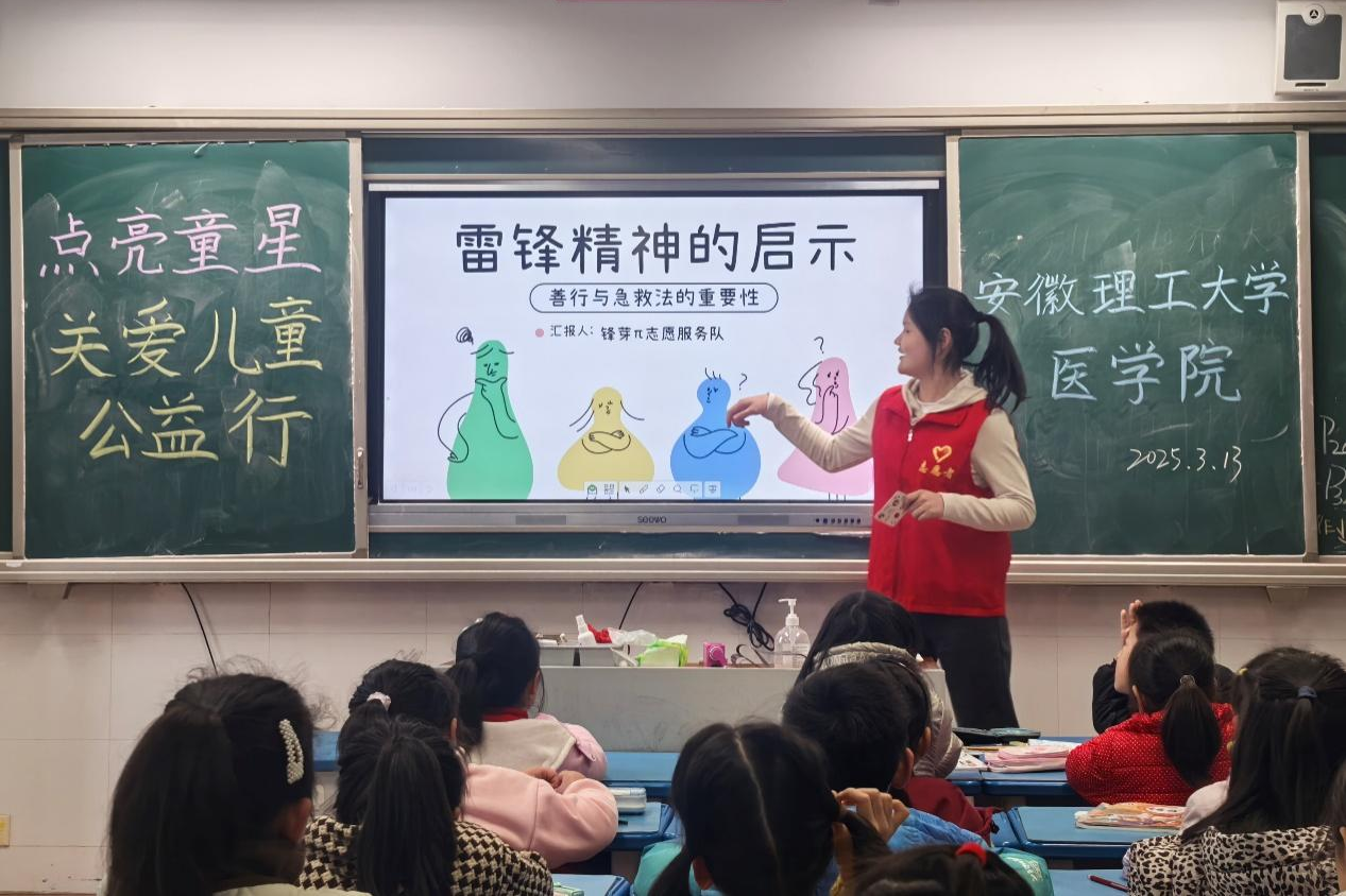 3月13日,安徽理工大学医学院锋芽π志愿服务队走进附属小学,以“关爱少年儿童,共筑美好未来”为主题,开展了一场别开生面的志愿服务活动。通过雷锋精神宣讲、多米诺骨牌公益游戏、海姆立克急救法教学等丰富形式,志愿者们将奉献精神融入实践,活动深受孩子们欢迎。