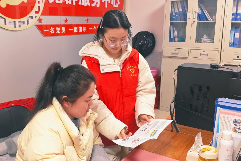 志愿者向社区工作者介绍预防小知识(供图:刘天勤)