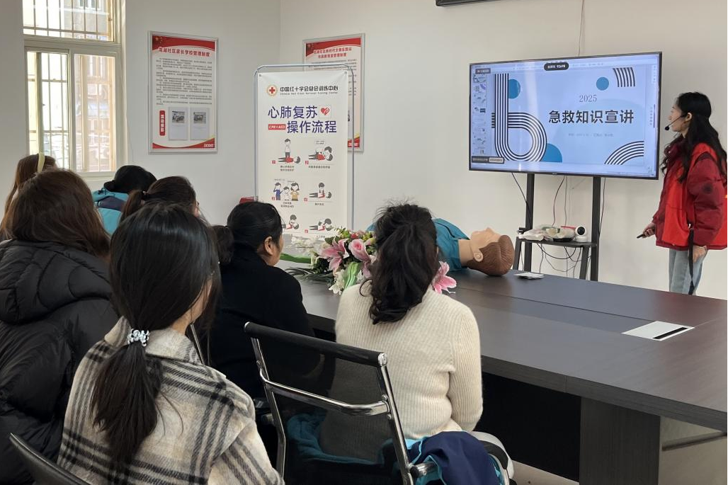 3月17日上午,志愿者们走进龙湖社区,开展急救知识科普活动。活动现场,志愿者们充分发挥专业特长,通过理论讲解、案例分析和模拟操作相结合的方式,为居民们详细讲解了心肺复苏、海姆立克急救法、创伤包扎等常用急救知识和技能。