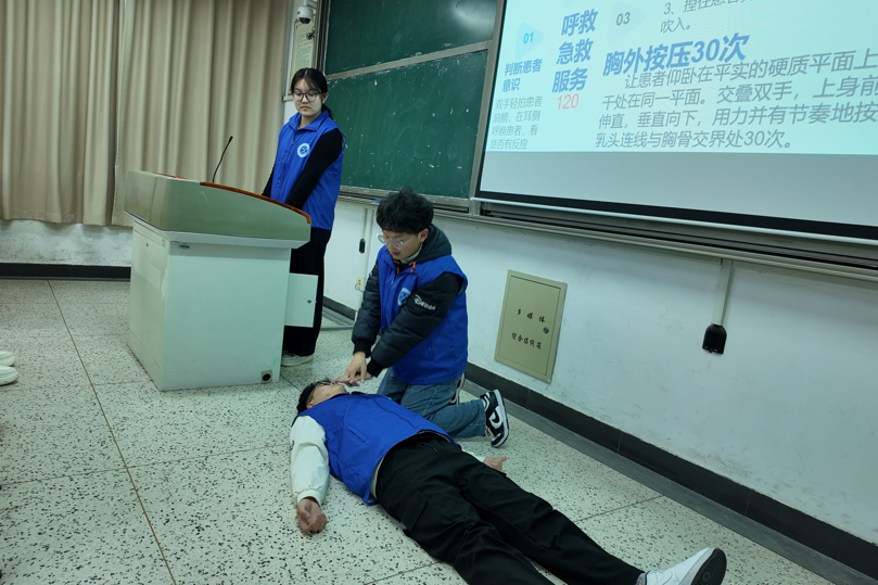 3月13日下午,“医”往直前志愿服务队与淮南师范学院携手开展“学雷锋,进校园”活动。在报告厅内,志愿者们通过PPT展示、真实案例分析以及现场模拟操作等方式,向同学们详细介绍了心肺复苏、海姆立克急救法等常见急救技能。在志愿者引导下,同学们亲自体验了急救流程。