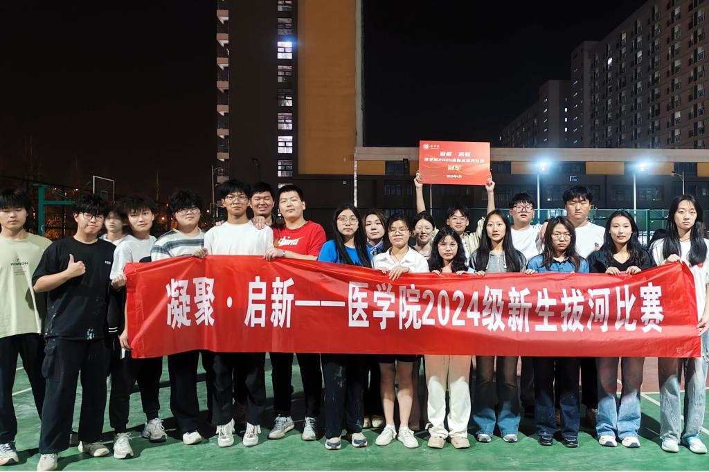 为丰富同学们的业余生活,促进医学院2024级新生班级间的沟通交流,增进新生的集体认同感、荣誉感和归属感,4月20日晚,医学院2024级新生拔河比赛于至诚体育场篮球场顺利举行,约300名同学参加比赛。