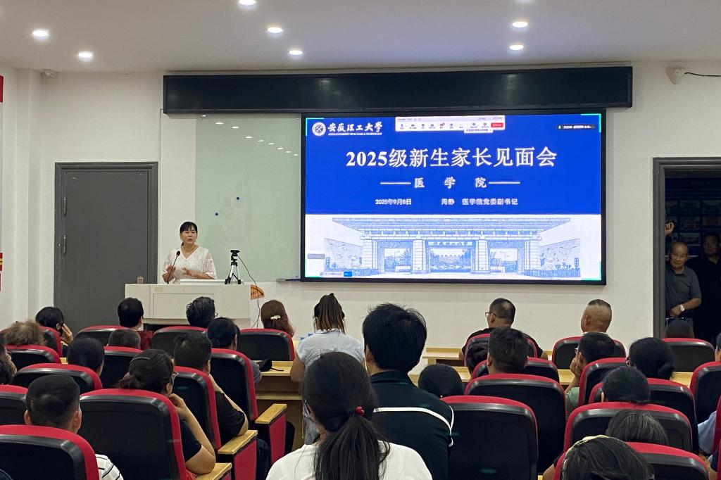 为深化家校协同育人机制,助力新生平稳开启大学生活,9月8日下午,医学院采取线上线下相结合的方式召开了2025级新生家长见面会。学院领导、辅导员及新生家长100余人线下在崇仁楼B119报告厅,近300名家长线上参加。会议由医学院党委副书记周静主持。