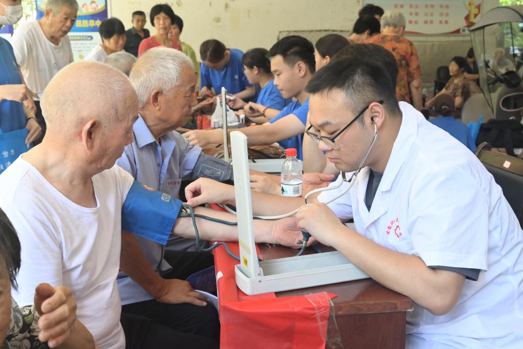 团队在临泉县裕泉花园开展义诊义检活动(供图:陈祥子)