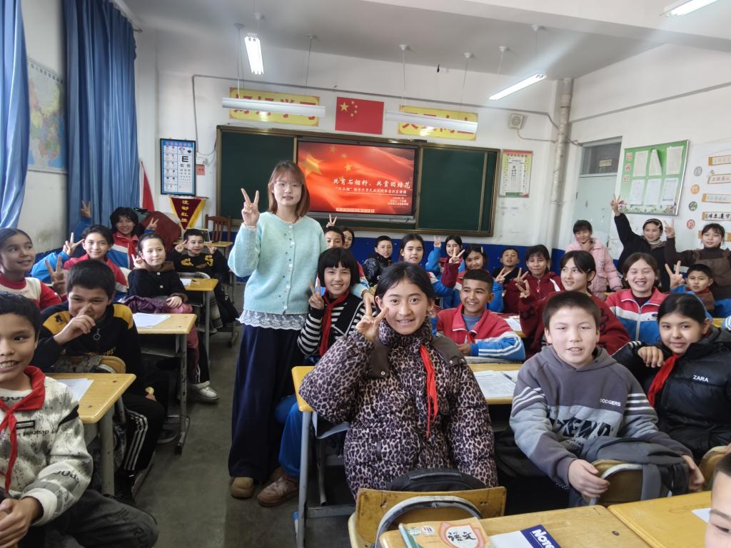 实践内容/感受:作为一名大二学生,寒假期间丁冰雁参加了“红石榴”——铸牢中华民族共同体意识宣讲实践团云行动。她选择前往当地小学,为六年级学生作铸牢中华民族共同体意识的宣讲。作为宣讲人,她不仅深化了对民族团结的理解,更在与孩子们的互动中感受到他们对“中华民族一家亲”的纯真向往。当地丰富多彩的活动,如民族文化节、手拉手结对子等,生动诠释了共同体意识的落地生根。看到孩子们眼中闪烁的光芒,丁冰雁坚信,通过持续的主题实践,民族团结的种子已在他们心中悄然萌芽,必将茁壮成长。