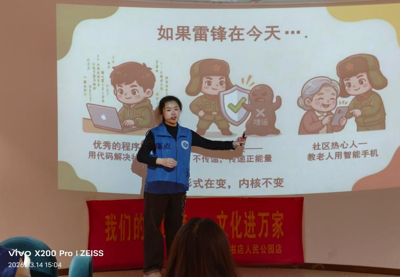 三月春风润万物,雷锋精神代代传。为弘扬新时代雷锋精神,践行医学生的初心与担当,医学院临床25-2班团支部白衣践锋志愿团走进新华村、新华书店、安徽理工大学附属幼儿园,开展多场志愿服务,以专业守护健康,以行动传递温暖。