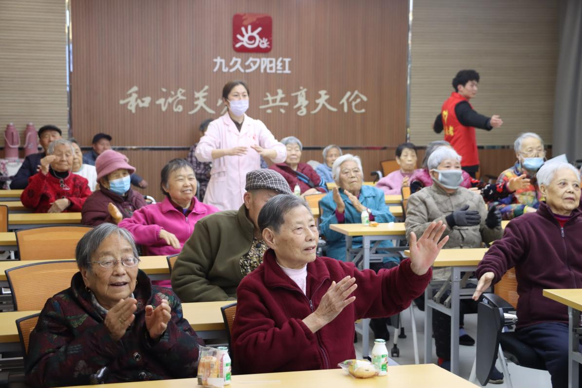 志愿者结合老年人身体状况,带领老人做舒缓健身操,通过科学适度的肢体活动促进血液循环、放松身心,把康养理念融入日常陪伴,助力老年群体提升生活质量。