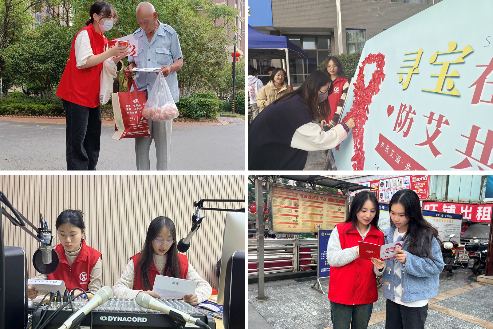 她与志愿服务的缘分,始于2022年的金秋时节。初入校园的她,被迎新志愿者们那如火般的热情深深感染,心中那颗一直渴望投身志愿服务的种子,终于找到了生根发芽的沃土——她毅然加入了安理天使志愿服务队。起初,她跟在学长学姐身后,在食堂中宣传预防艾滋病防治知识时,满心都是无措与忐忑;第一次独自面对社区里的老人,教他们辨识结核病症状时,紧张得手心都沁出了汗珠;而如今,她已能熟练地为群众进行义诊义检,举手投足间尽显从容。当老人们恍然大悟道:“原来肺痨就是结核病啊,我以后可得好好注意了”时,那一刻,她真切地领悟到:医学生的使命,不仅仅局限于那冰冷的手术台,更在于每一个渴望健康、需要守护的角落。