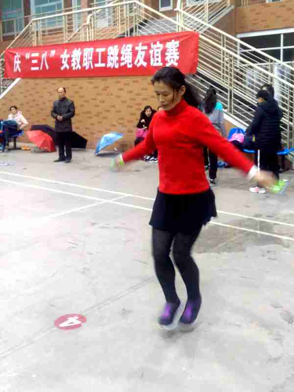 3月8日下午4点30分,校工会举办的庆“三八”女教职工跳绳友谊赛在大学生素质中心正式开赛。我院选派了由3名女教师和1名男教师组成的代表队,由女工委员张秀云和文体委员陈向明带队,冒着微寒的春雨,前往参加了比赛。