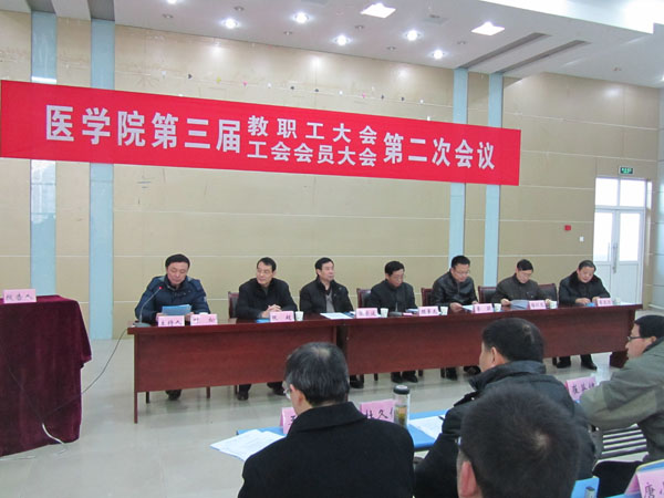 医学院院长张荣波代表学院作了题为《用谋事要实、创业要实的精神加快推进学院发展》的工作报告,他从教学、科研、学科、教师队伍建设等方面对2015年工作进行了全面总结,并从五个方面提出了2016年工作思路。