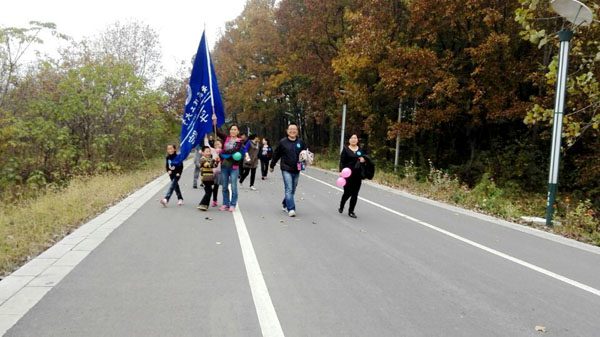 两点整,随着一声欢呼,活动正式开始。在医学院旗帜的带领下,徒步队伍向南沿环山南路,经志高游乐园向东,途经仙女湖到达洞山隧道,继而向北走到环山北路,再向西回到起点,全程约七公里。途中大家相助照顾,边走边聊,一路欢声笑语,其乐融融。四时许,队员们陆续回到大本营,纷纷在活动海报上签名,并拍照留念。最后,在大家“明年春天我们再来”的约定声中,持续了近3个小时的环山徒步活动顺利结束。