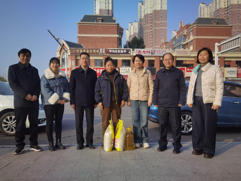 在我校驻村帮扶干部、新华村支部书记彭晶的陪同下,张可佳一行五人走访慰问了结对帮扶对象,为他们送上了慰问金及食用油、大米等慰问品,了解他们的身体和生活状况,并表达了学校对他们的问候。