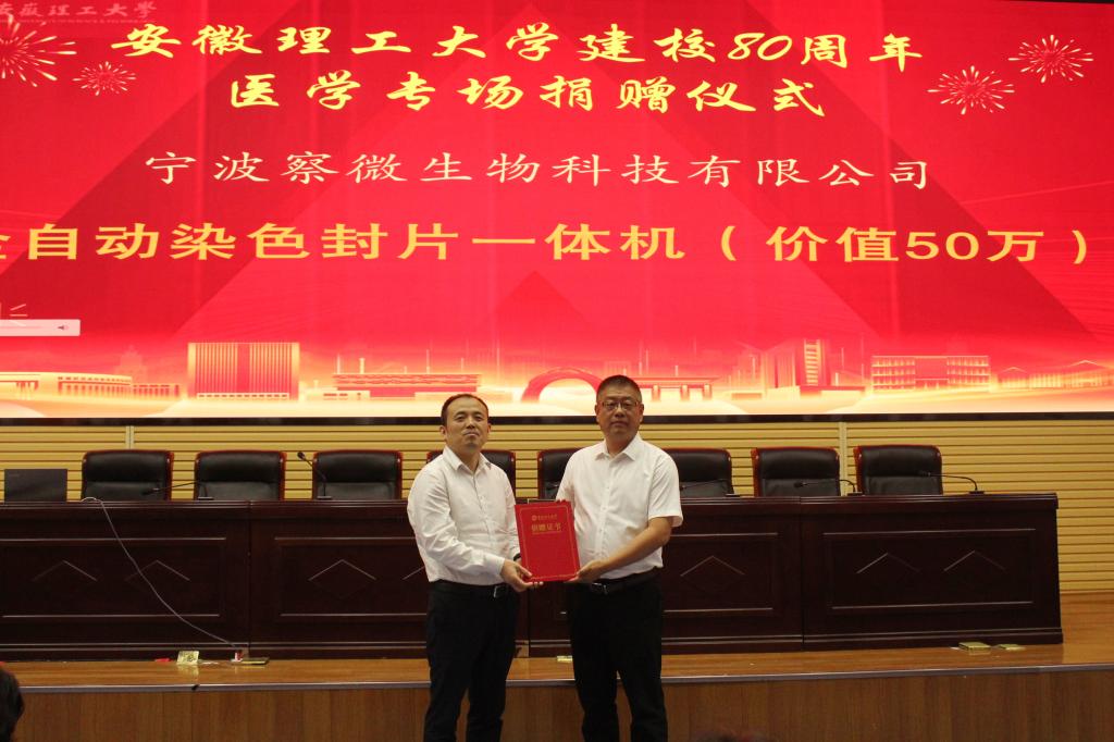 本次捐赠仪式汇聚了社会各界的深厚情谊与大力支持。其中,附属淮南东方医院集团总医院捐赠20万元及黑天鹅4只;附属新华医院捐赠20万元;附属眼科医院捐赠20万元;南京正大天晴制药捐赠50万元;江苏恒瑞医药司投入科研合作项目经费80万元(分两年实施);石药集团支持临床科研项目30万元。校友企业宁波察微生物科技有限公司捐赠价值50万元的全自动染色封片一体机;校友企业智慧医疗服务(山东)有限公司捐赠价值100万元的医疗器械数字化管理产业互联网平台。此外,自2024年启动的医学院院史文化建设基金,也已收到各地校友捐赠共计30余万元。截至目前,本次医学专场捐赠共获得企业及校友捐赠价值累计达400万元。