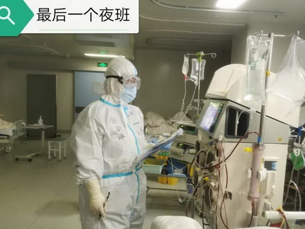 最后,简单的向大家汇报一下我在武汉的工作情况,在江岸方舱医院工作了20余天,管理的都是轻症病人,主要是在抗病毒的基础上给予调整体温、血压、血糖,还要关注病人的睡眠和心理,“偶尔是治愈,常常是帮助,总是去安慰”正是我们在方舱医院工作的写照,用我们的耐心、细心和爱心帮助患者走出病毒的阴霾,收获的是患者的理解和点赞,同时还有浓浓的战友情!应工作需要,我作为一名重症人,转战到武汉市第七医院重症医学科,转眼间,10天的时间又过去了,当看到病人身上插满管路,每天俯卧位16~20小时,值班时随时调整呼吸机及血滤参数,并感受到戴三层手套行中心静脉穿刺的艰辛,才充分体会到重症人承受的压力之大,但重症永远是冲锋在前、坚守到底,这也是重症人的职责所在!