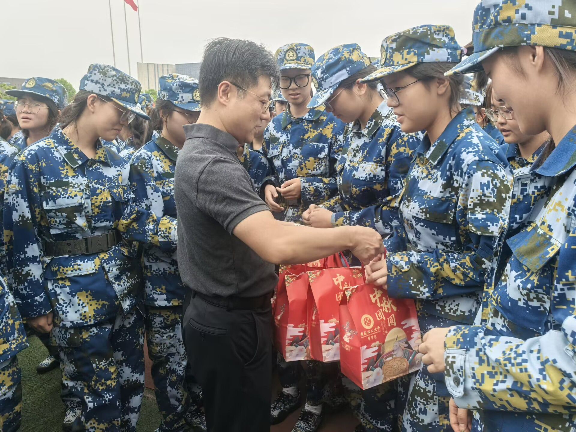 值此中秋佳节,学院党政领导首先向2024级新生和带训教官送上节日的祝福,对各位辛勤付出、不辞辛劳的教官表示了崇高的敬意,赞扬了新生们在军训中所展现出的坚韧不拔的优良品质,要求新生要始终以饱满的热情和顽强的意志,不断锤炼品质,把军训中养成的优良素质和习惯带入今后的学习和生活中去,用昂扬的姿态、向上的冲劲上好“大学第一课”。