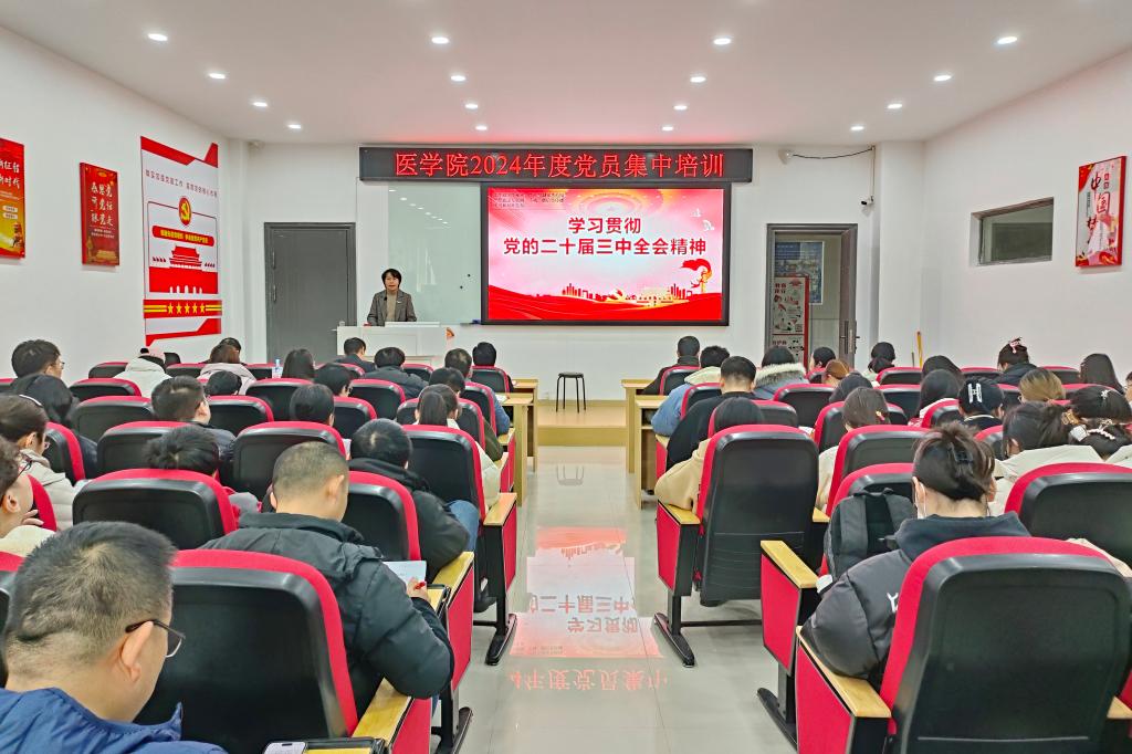 12月5日,医学院在崇仁楼B119举行2024年度党员培训班开班仪式。院党委书记张可佳作党课报告,学院全体师生党员参加了培训会。