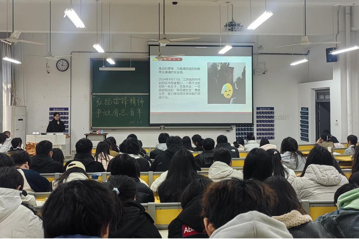 会上,学生会理论宣传部李欣楠首先通过播放雷锋事迹短片引入主题,结合雷锋同志生平事迹与新时代青年奋斗故事,围绕“螺丝钉精神”“奉献精神”的当代价值展开生动讲解,并以2025年宁夏银川地震时高中生背起受伤同学逃生、大学生支持“浙江锅盔”大叔帮助其渡过难关等具体案例,号召同学们从身边小事做起,将奉献精神转化为服务社会的实际行动。随后,大家结合自身经历,围绕如何践行雷锋精神分享了学习感悟,同学们纷纷表示,将以雷锋精神为榜样,积极参与志愿服务活动,用实际行动践行雷锋精神,主动承担社会责任,成为立大志、明大德、成大才、担大任的新时代好青年。