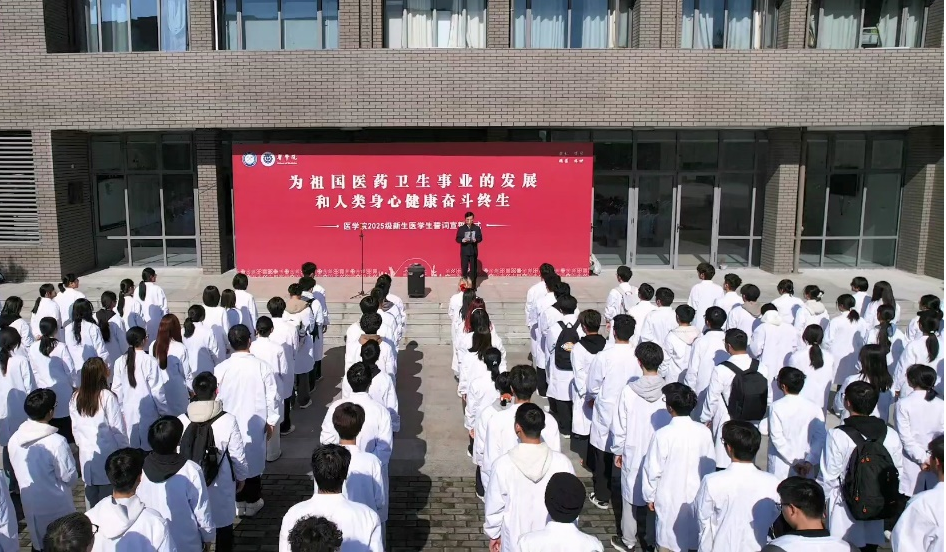 11月12日,医学院在崇仁楼南门广场举行2025级新生医学生誓词宣誓仪式。医学院院长胡东、院党委副书记周静、新生辅导员、班级助导及全体新生参加了本次仪式,共同见证这一承载医学信仰与责任的重要时刻。