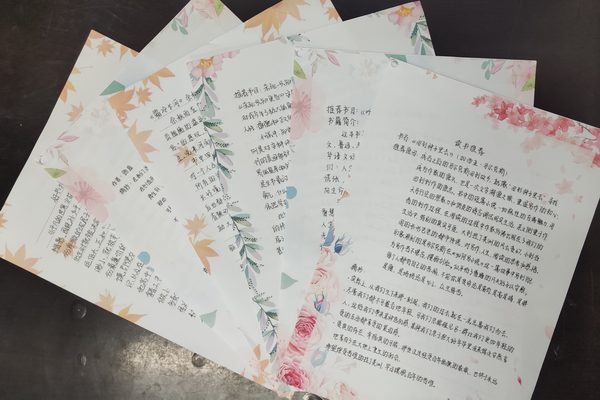 本次活动共收集作品90余份,推荐书目有《活着》《回到种子里去》《平凡的世界》《老人与海》等50余篇。同学们运用笔墨将他们所热爱的书籍呈现在了纸张之上,通过多维度分析作品内容、作者经历、时代背景、景物描写、人物刻画、文学性等,表达对作品的喜爱之情,同时激发同学们对阅读的热情和兴趣,鼓励同学们在日常生活中养成勤读、善读、乐读的好习惯。