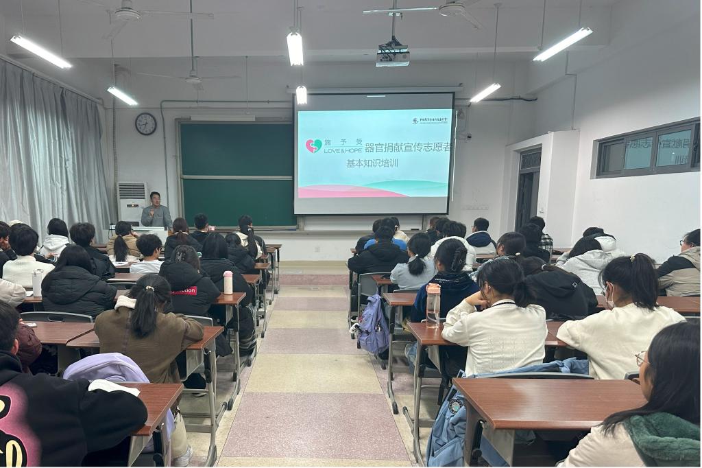 11月27日晚,由中国器官移植发展基金会指导,安徽省红十字会遗体(器官)捐献中心安理大接受站主办,施予受公益社团承办的高校人体器官捐献宣传志愿者培训活动,在明理北楼301教室成功开展。