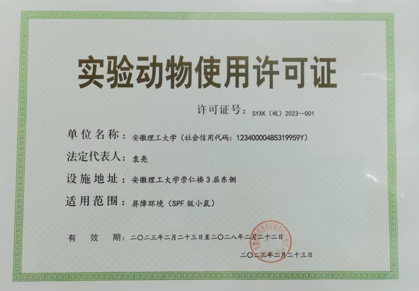 安徽理工大学实验动物中心,于2023年获得安徽省科技厅颁发的《实验动物使用许可证》。近年来在学校各级领导的关心和指导下,得到了良好的发展。